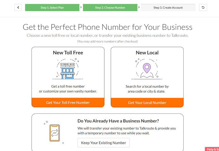 You can get started with TalkRoute by signing up for a plan online. You’ll need to create a new account with your email, then choose whether you want a local or toll-free number or to port your existing number. After that, just enter your name, company name, and billing information to activate your VoIP plan. I found the whole process takes less than two minutes.