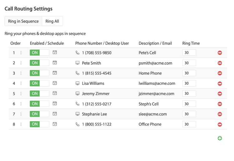What’s more, you can route calls to any US or Canadian phone number and set up ring groups to have multiple devices ring for an incoming call. You can also set hours for each of your numbers or devices to control how incoming calls should be forwarded.