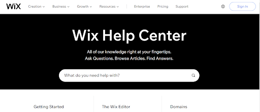 Wix has an excellent help center available from within the editor itself. The developer mode has its own superb support website with video tutorials, step-by-step exercises, and examples.