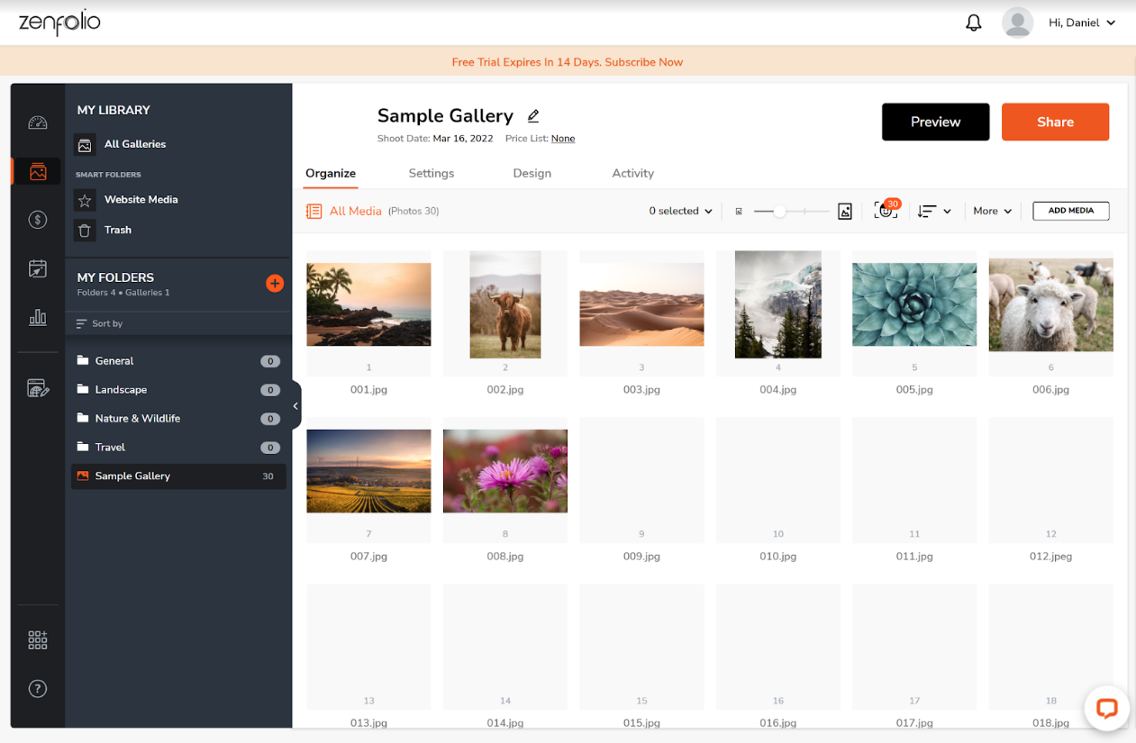Founded in 2004, Zenfolio has grown to become a popular niche website builder. It’s designed for those who want to create a photo/video portfolio, and it comes with a range of ecommerce, business management, and scheduling tools to help you run a successful business.