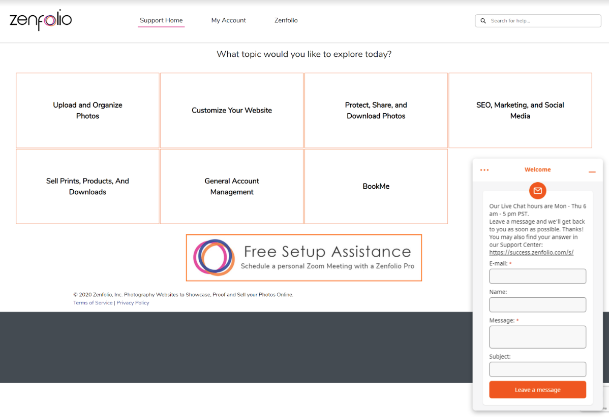 Zenfolio’s live support is quite limited. Live chat is only available from Monday to Thursday, 6AM to 5PM (PST). Anytime you attempt to contact the company outside these hours will result in an email support ticket being lodged. It can take some time to get a reply, so don’t expect serious issues to be resolved quickly.