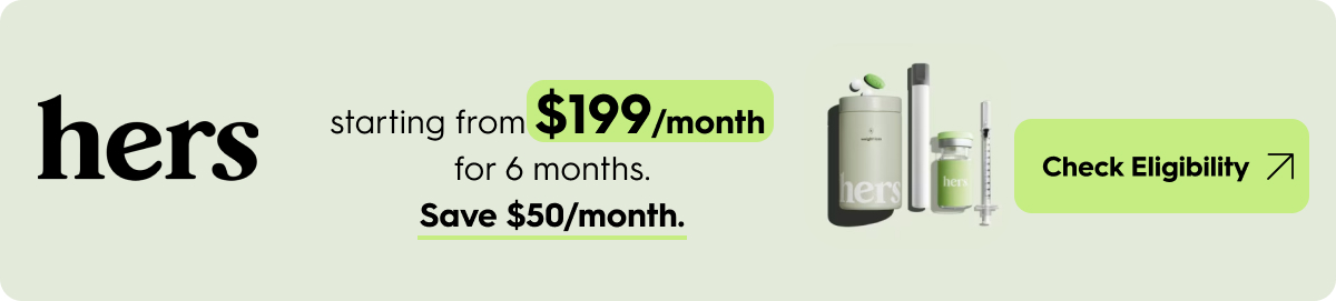 Want real-time support and prescription medication shipped directly to your door? Hers connects you with licensed clinicians who guide you through every step from the first conversation to long-term monitoring of your injectable treatment plans starting at $199/month for 6 months (save $50 every month).